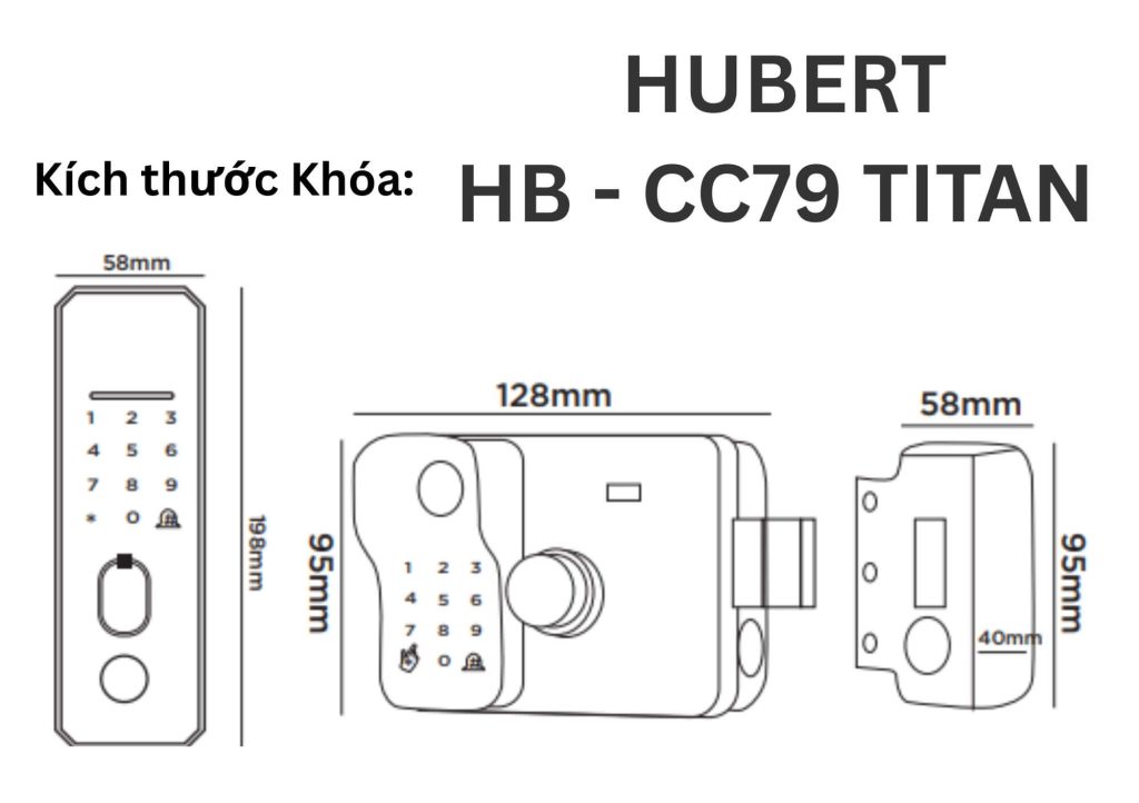 KÍCH THƯỚC KHÓA HUBERT HB CC79 TITAN – PHÙ HỢP NHIỀU LOẠI CỔNG