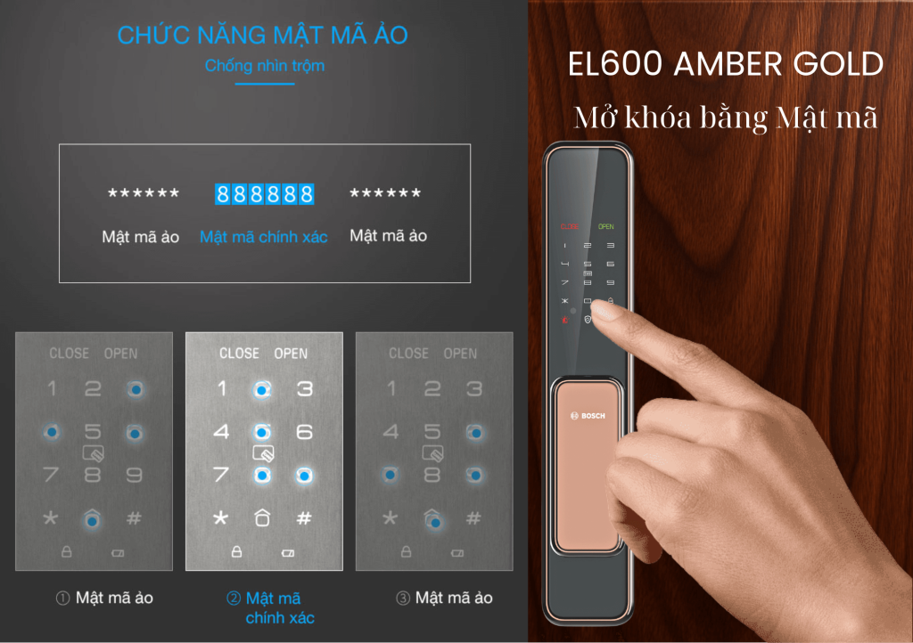 Hệ thống mã số được bảo vệ bằng công nghệ xáo trộn ký tự ngẫu nhiên và mật khẩu ảo lên tới 32 ký tự, khiến kẻ gian không thể đoán mã ngay cả khi họ quan sát bạn nhập. Cơ chế này đặc biệt phù hợp với môi trường đông người như chung cư, văn phòng.
