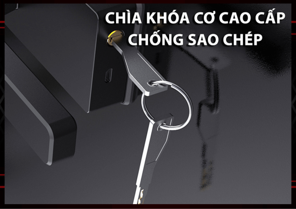 Bên cạnh các phương thức mở khóa hiện đại, khóa còn được trang bị chìa cơ cao cấp chuẩn châu Âu, sử dụng trong trường hợp khẩn cấp như khi khóa hết pin hoặc điện thoại bị lỗi. Lõi chìa được thiết kế chống sao chép, gia công chính xác bằng CNC.