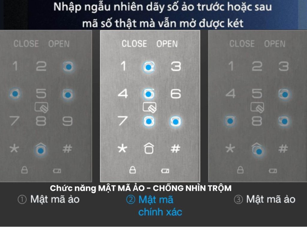 Mật khẩu: Hỗ trợ mật khẩu ảo 32 ký tự, chống nhìn trộm, đảm bảo an toàn tối đa.