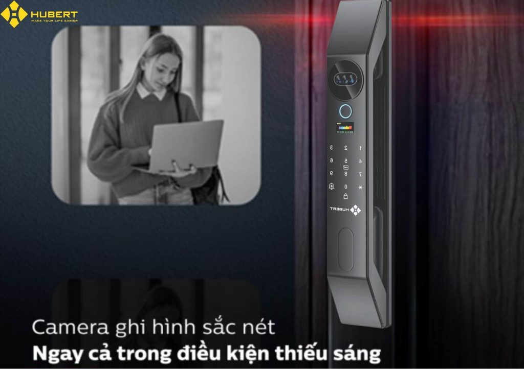 Không chỉ đơn thuần là một thiết bị khóa cửa thông minh, Hubert HB CG64F còn được trang bị camera quan sát chất lượng cao ngay trên thân khóa. Đây là một trong những điểm nâng cấp mạnh mẽ về mặt an ninh và trải nghiệm người dùng, biến chiếc khóa thành một thiết bị giám sát mini ngay tại cửa nhà.
