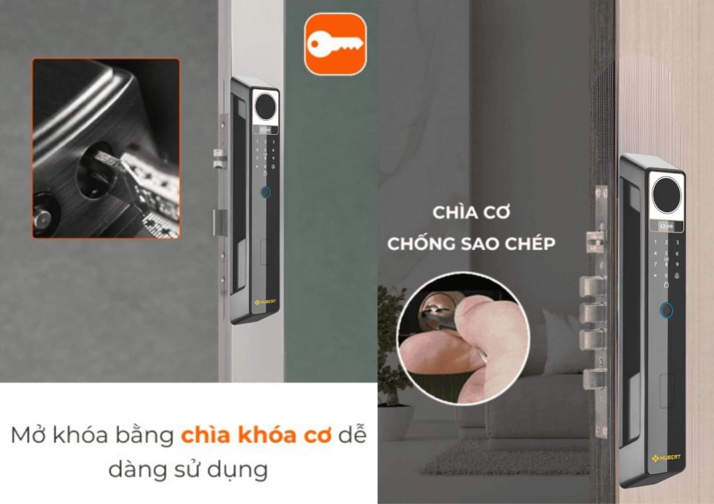 Khóa được trang bị chìa cơ có thiết kế chống sao chép đặc biệt, dùng trong các tình huống khẩn cấp như mất điện hoặc hết pin. Cấu tạo chìa bảo mật cao, tránh trường hợp bị làm giả.
