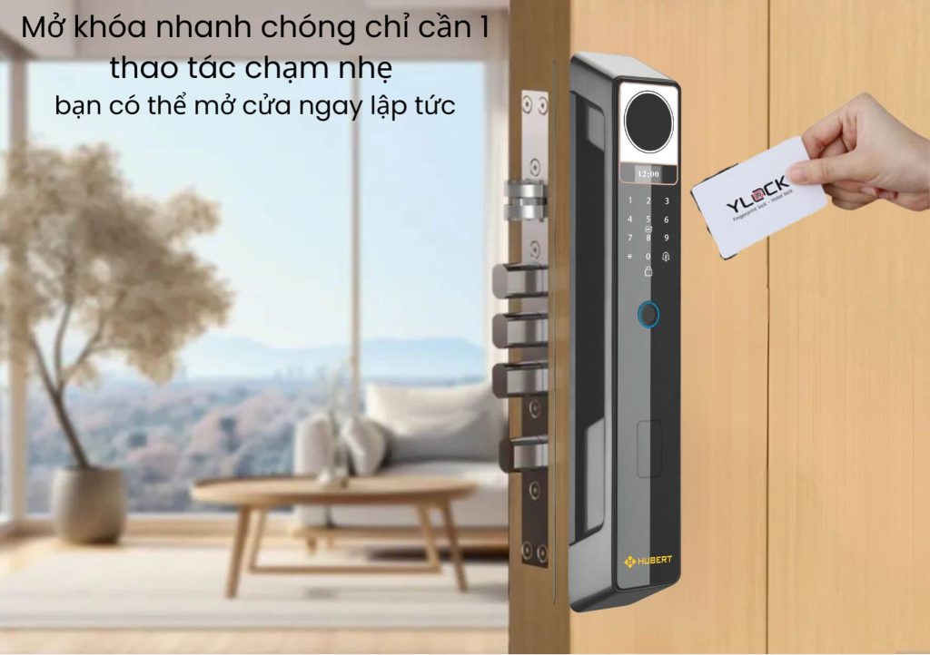Người dùng chỉ cần đưa thẻ từ lại gần bộ phận cảm ứng, cửa sẽ được mở trong tích tắc mà không cần nhập mật khẩu hay sử dụng vân tay – đặc biệt tiện lợi cho người già, trẻ nhỏ hoặc khi tay ướt/bẩn. -