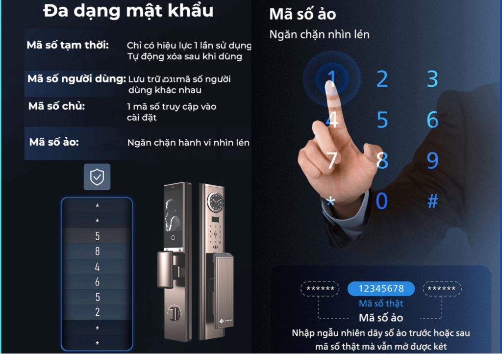 Khóa HUBERT HB CG89VF hỗ trợ 6 phương thức mở khóa hiện đại: