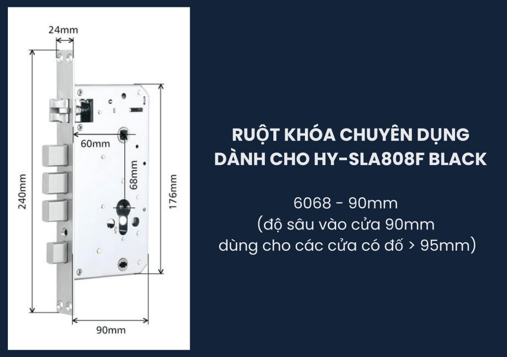 KHÓA CỬA GỖ HYUNDAI HY-SLA808F BLACK