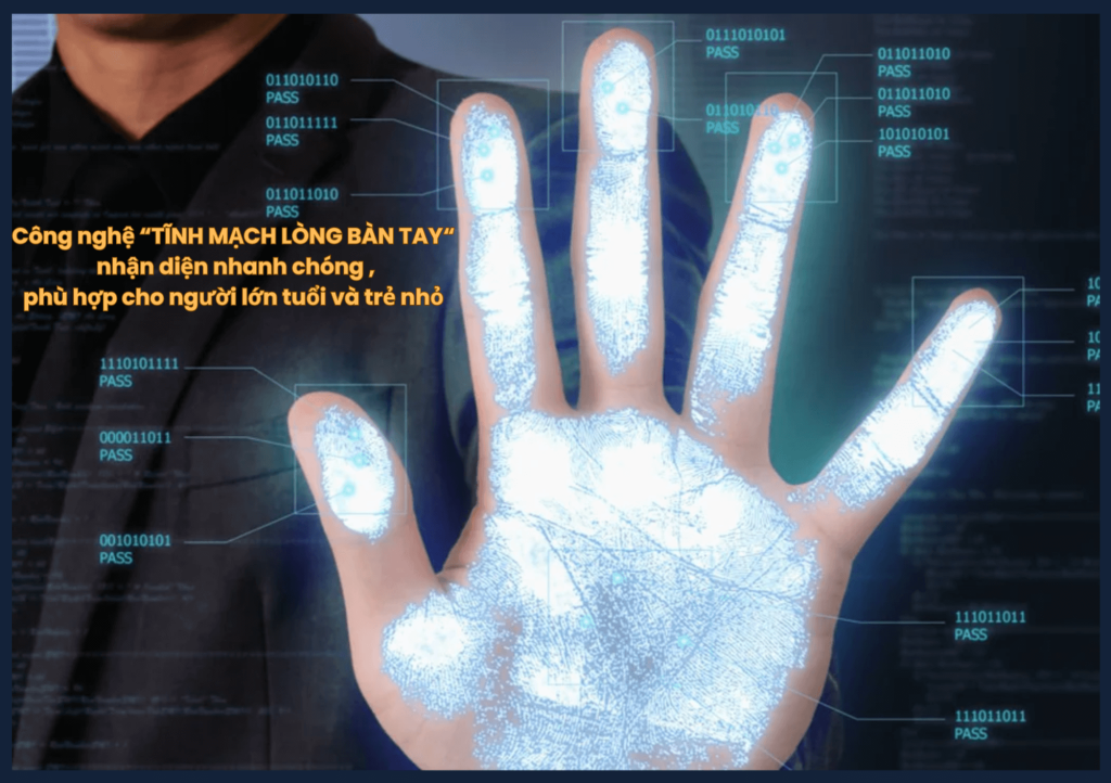 CÔNG NGHỆ TĨNH MẠCH LÒNG BÀN TAY: Sử dụng hình ảnh hồng ngoại để quét và xác định mạch máu thật dưới da, mang lại độ chính xác và bảo mật vượt trội.