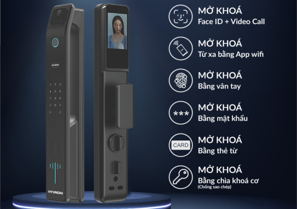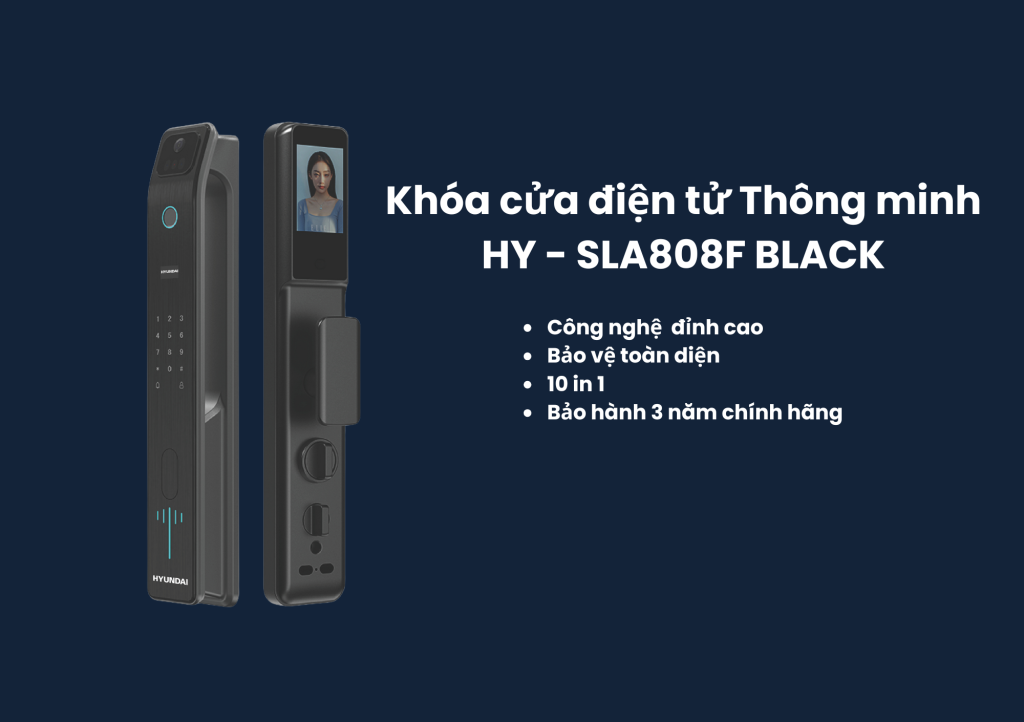 KHÓA CỬA ĐIỆN TỬ HYUNDAI HY-SLA808F BLACK là một trong những mẫu khóa điện tử tiên tiến hàng đầu của thương hiệu HYUNDAI, được thiết kế chuyên biệt cho cửa gỗ. Sở hữu loạt công nghệ hiện đại như nhận diện khuôn mặt 3D, cảm biến vân tay công nghệ cao, mở khóa bằng tĩnh mạch lòng bàn tay cùng khả năng điều khiển từ xa qua ứng dụng Tuya, sản phẩm mang đến giải pháp bảo mật thông minh và tiện lợi vượt trội cho không gian sống hiện đại.