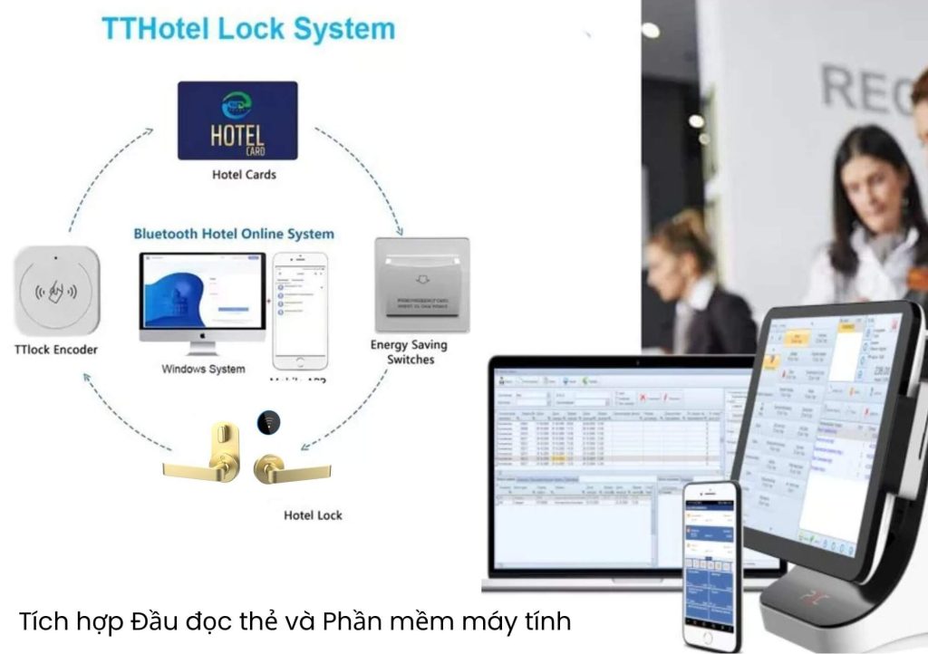 Tích hợp: Đầu đọc thẻ, phần mềm quản lý trên máy tính