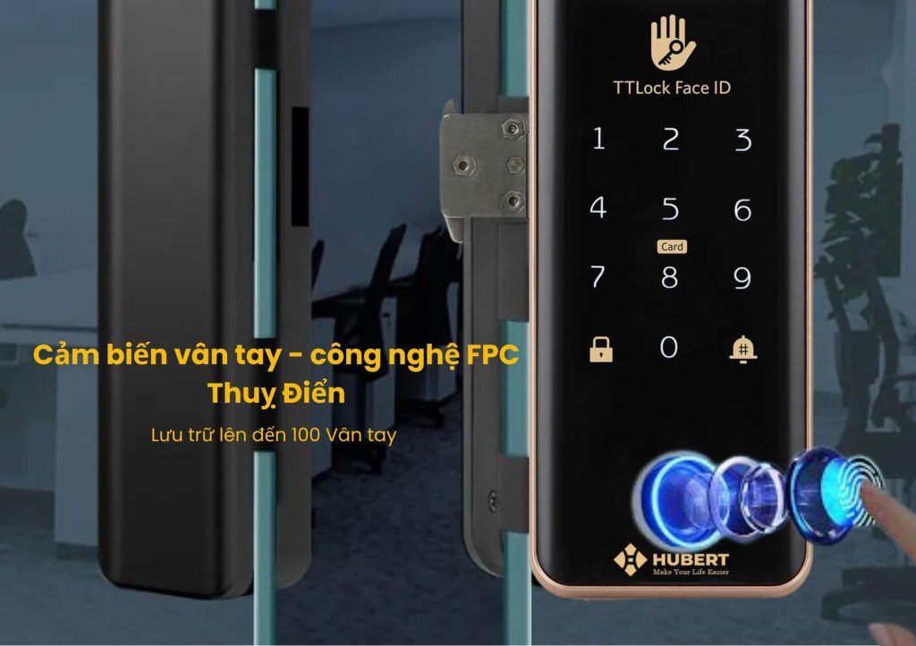 HUBERT KHÓA CỬA KÍNH THÔNG MINH HB CK79F BLACK