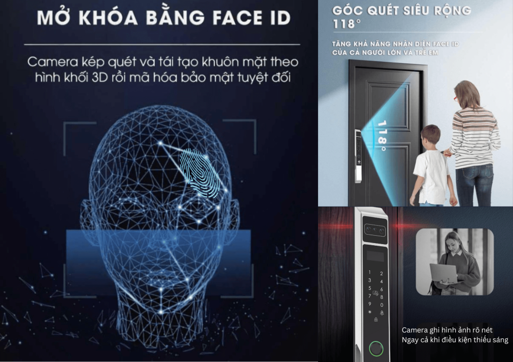 Công nghệ mở khóa bằng khuôn mặt 3D tiên tiến, nhận diện nhanh chỉ trong 0.5 giây.
