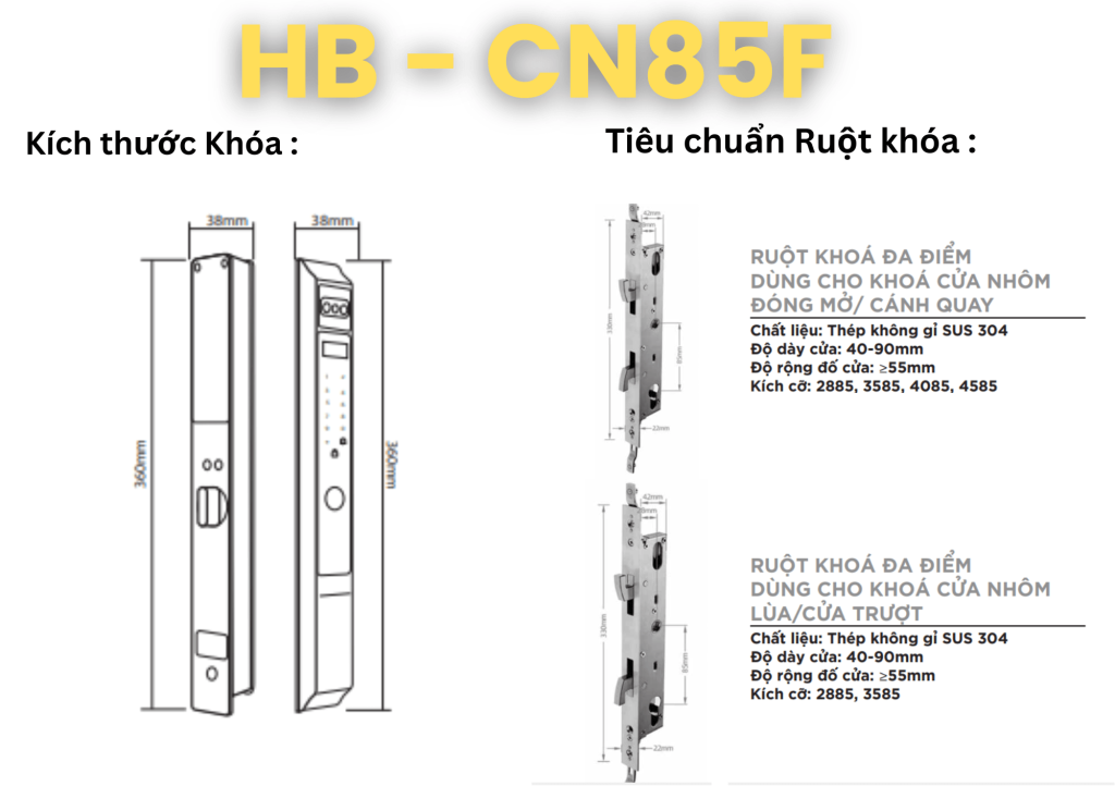 Tên sản phẩm: Khóa điện tử cửa nhôm HUBERT CN85F