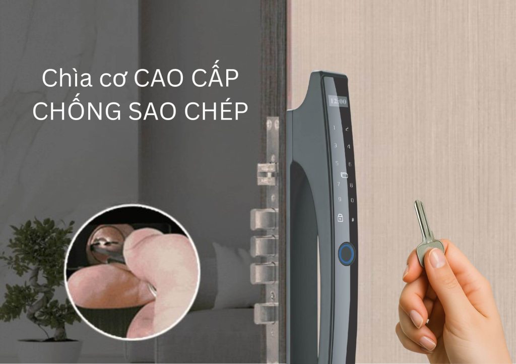 Trong những trường hợp khẩn cấp hoặc mất điện, người dùng có thể sử dụng chìa cơ đi kèm để mở cửa. Chìa được thiết kế chống sao chép, đảm bảo an toàn tuyệt đối trong các tình huống đặc biệt.