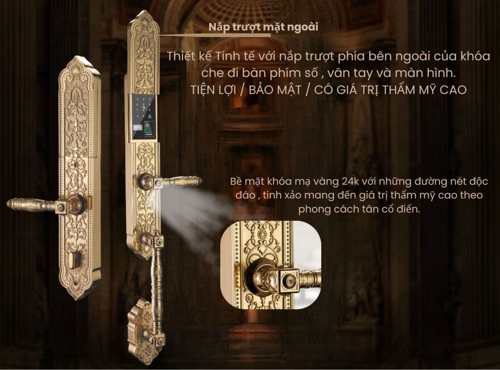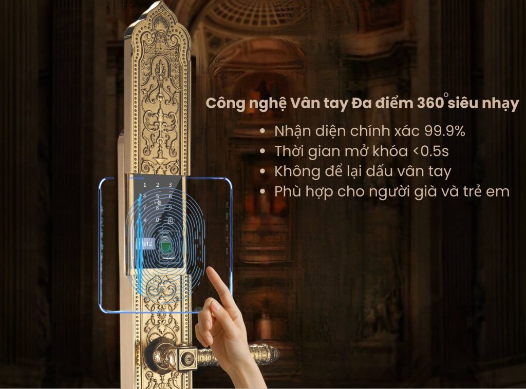 Mở khóa chỉ trong 0,5 giây, nhận diện hình ảnh 3 chiều. - Độ dày mạ vàng lên đến 0,1cm
