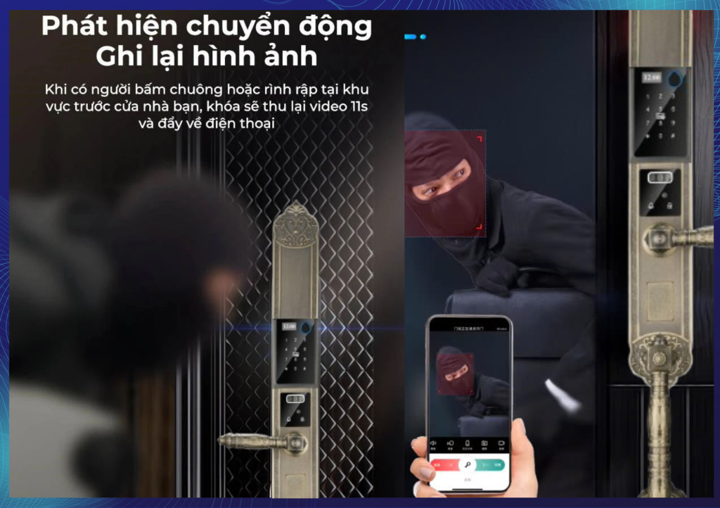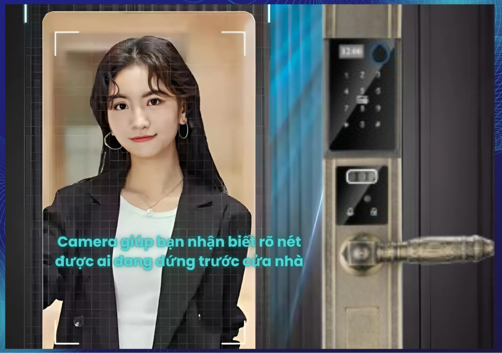 Camera tích hợp có góc nhìn bao quát và hình ảnh sắc nét, đảm bảo bạn có thể quan sát rõ khuôn mặt và hành vi của người tiếp cận cửa nhà. -